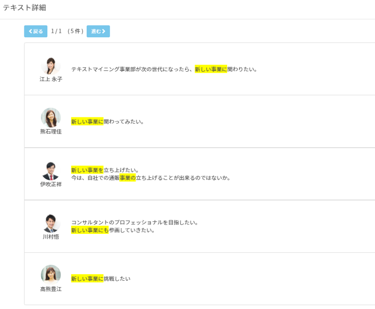それでは、『新しい』『事業』について発言のある社員は誰なのか?